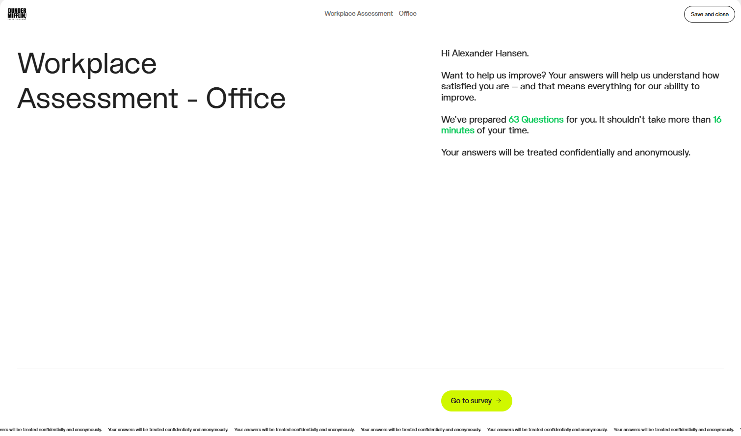 The text "This survey is not anonymous" is used for surveys that are not anonymous. If the survey is anonymous, it will state: "Your responses will be treated confidentially and anonymously"