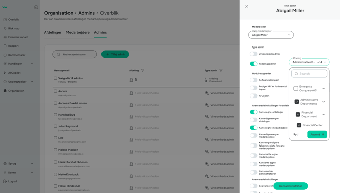 - Vælg afdelinger de skal kunne tilgå